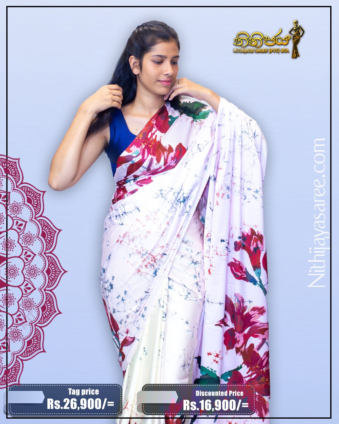 Nitijaya Sari is a local business that has been gaining a high reputation among Sri Lankan women since 2007 by importing and selling sari suitable for Sri Lankan women at a very reasonable price, making it one of the latest fashions made in India for women up to the age of 18 years and above. Maintaining the high quality of all the saris made, we have been very friendly with the customers in selecting the saris according to their needs. We have provided a very high-quality service. Also, our website has been activated so that purchases can be made, and for the first time in Sri Lanka, customers have been able to view and order saris through video technology through media such as Facebook and YouTube. You can view our saris on all other social media as well. You can also come to the branches and make purchases. You can get sarees imported from India as well as locally made batik sarees, handloom sarees as well as state-of-the-art saris designed by the company in a very short period of time. We are pleased to announce that we are doing business in a Buddhist environment while attracting customers. We wish you the best of luck as we have been promoted since 2007.